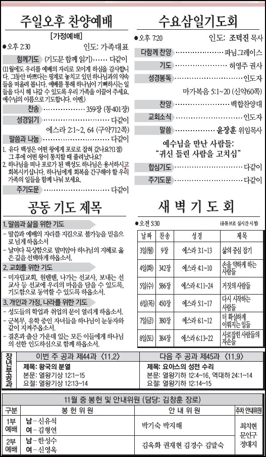 ◆ 11월 02일 첫 번째 주일 교역자, 교직원, 성도 분들의 소식 안내입니다.